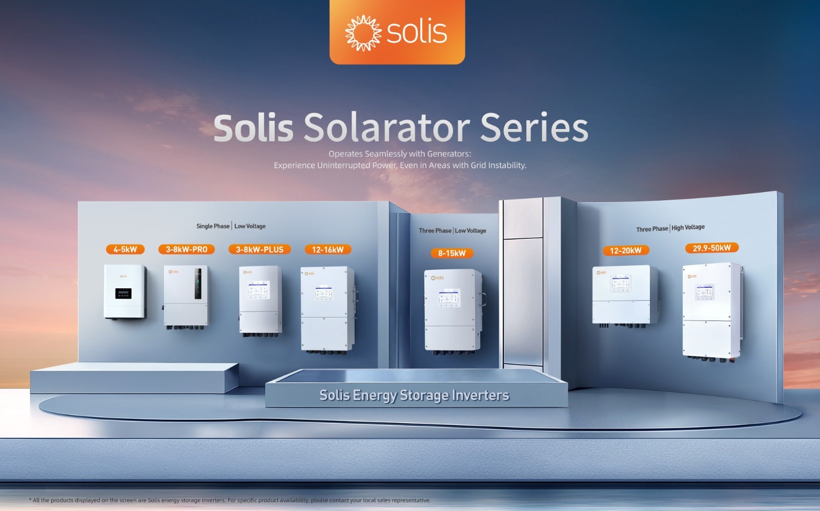 ● Three Phase: Models available from 8kW to 50kW, with both low and high-voltage options.