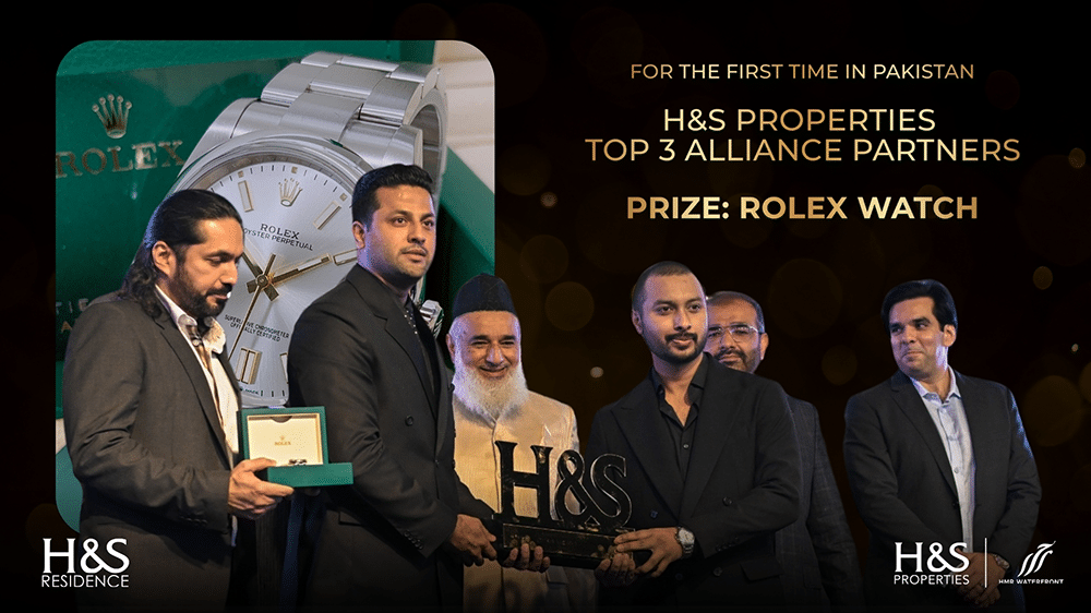 The awards were presented by Mr. Saad Haq, Group CEO of H&S Group, and Mr. Emad Haq, Vice Chairman of H&S Group, whose leadership has propelled H&S to the staggering of success both in Pakistan and internationally. Joining them were Mr. Haji Muhammad Rafiq Pardesi, Chairman of HMR, and Mr. Hasnain Pardesi, CEO/Director of HMR Waterfront, further elevating the prestige of the ceremony and acknowledging the unparalleled dedication of H&S alliance partners.