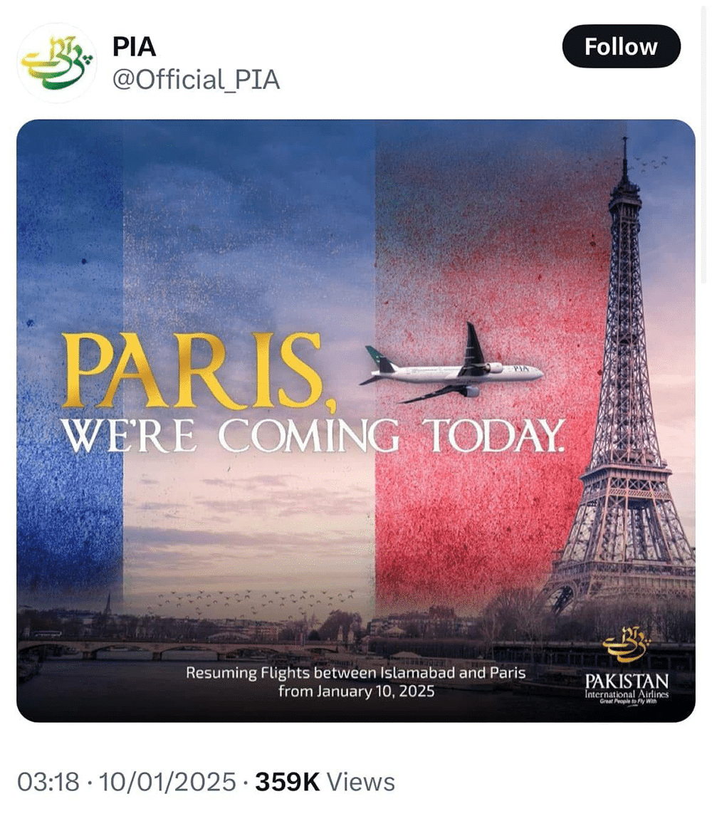 Pakistan International Airlines (PIA) recently found itself at the center of a social media storm with a tweet announcing the resumption of flights to Paris. The post, featuring the Eiffel Tower and the tagline “Paris, we’re coming today,” quickly went viral, but not for the reasons PIA intended.