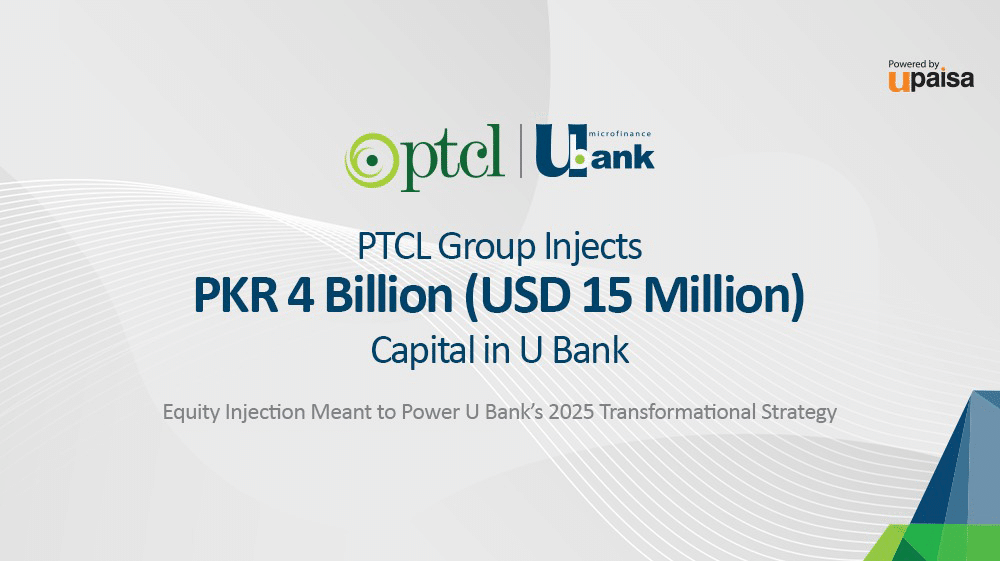 Pakistan Telecommunication Company Ltd. (PTCL) Group, the parent company of U Microfinance Bank (U Bank), has injected a significant capital investment of PKR 4 billion (equivalent to USD 15 million) into U Bank, to drive the growth of its Islamic Banking services and digital innovation initiatives. This strategic equity boost underscores the unwavering confidence that PTCL Group has in U Bank’s promising growth strategy, upward trajectory, and viable vision for its future.