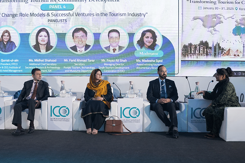 The second day explored the role of airlines in promoting sustainable tourism, with Pakistan International Airlines (PIA), FPCCI, and Aero Engine Craft contributing to the discussion. Another key session focused on role models and successful ventures in tourism, featuring insights from Iran’s Cultural Heritage Department, the Walled City of Lahore Authority, Green Tourism Pakistan, and various provincial tourism bodies.